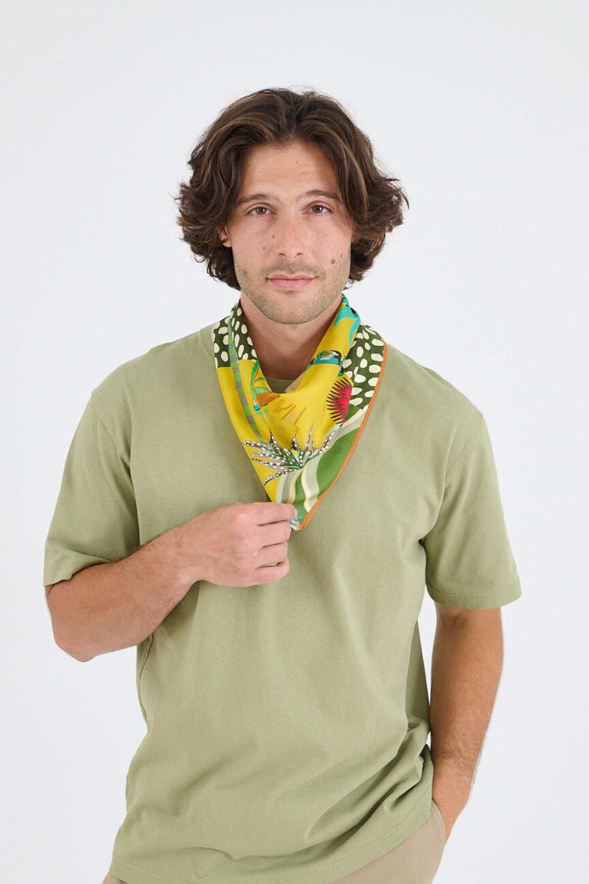 Discover the timeless charm of our 100% silk scarf. Its silky texture and glossy finish bring a touch of luxury to every look, ideal for enhancing your everyday elegance.