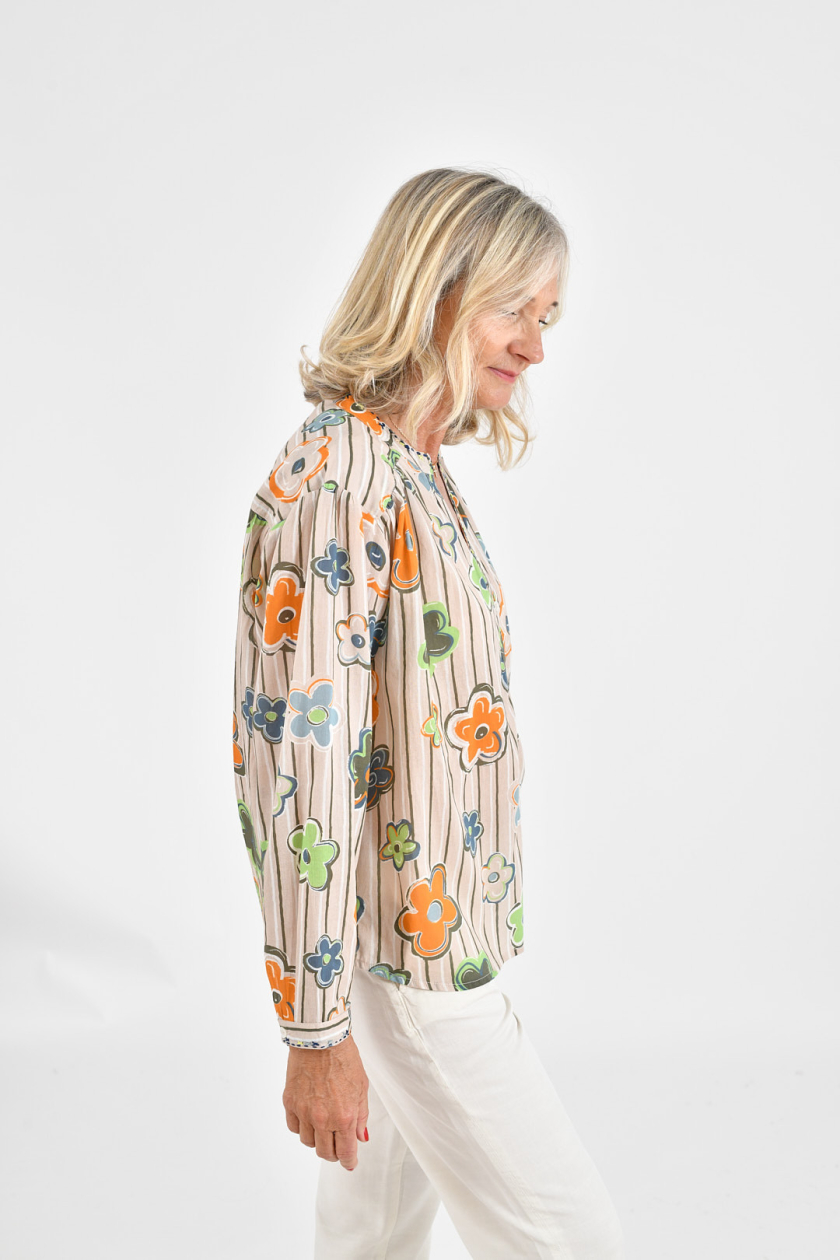 Combining natural comfort and casual elegance, this cotton blouse with embroidery is an essential wardrobe piece.