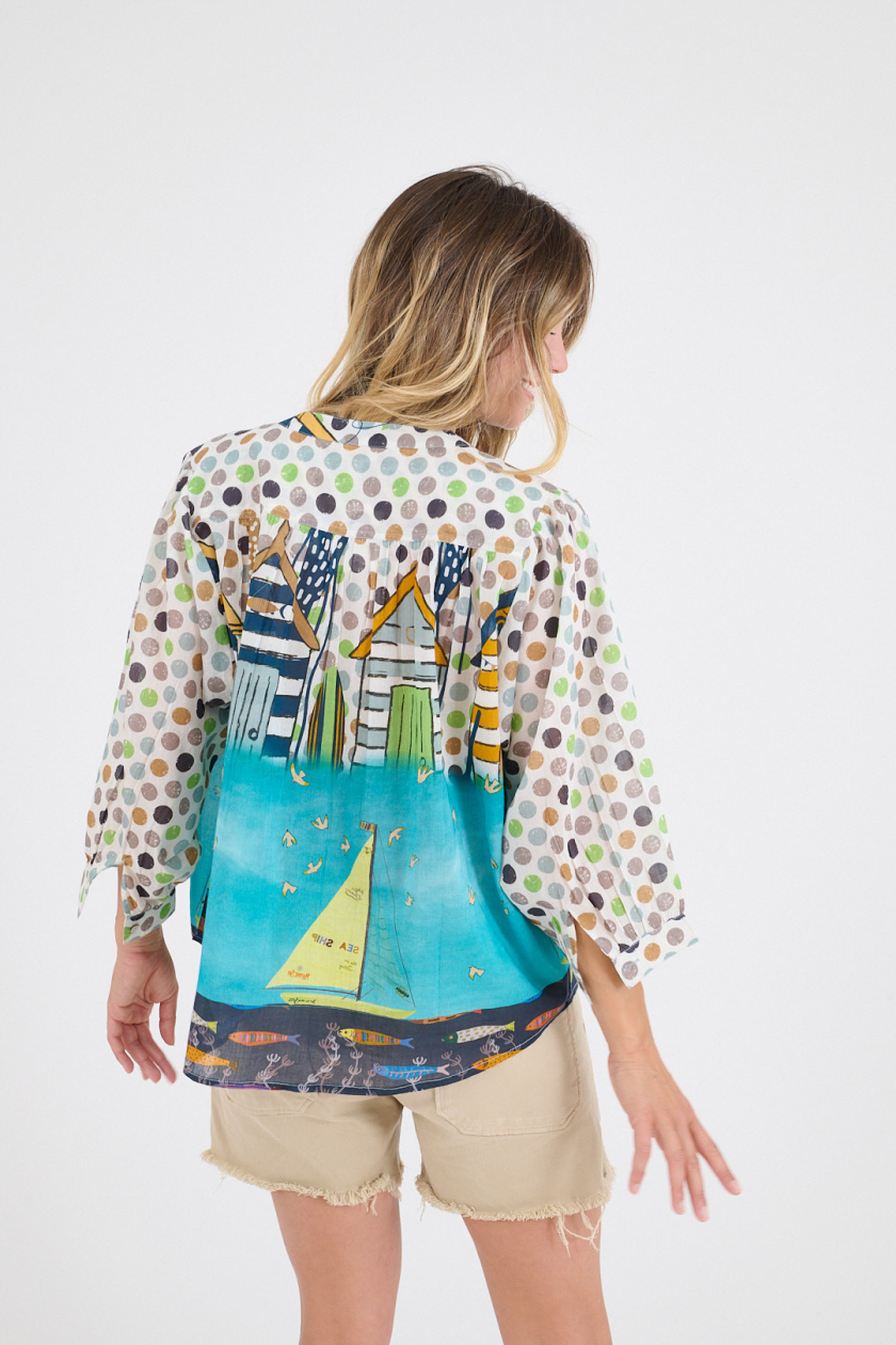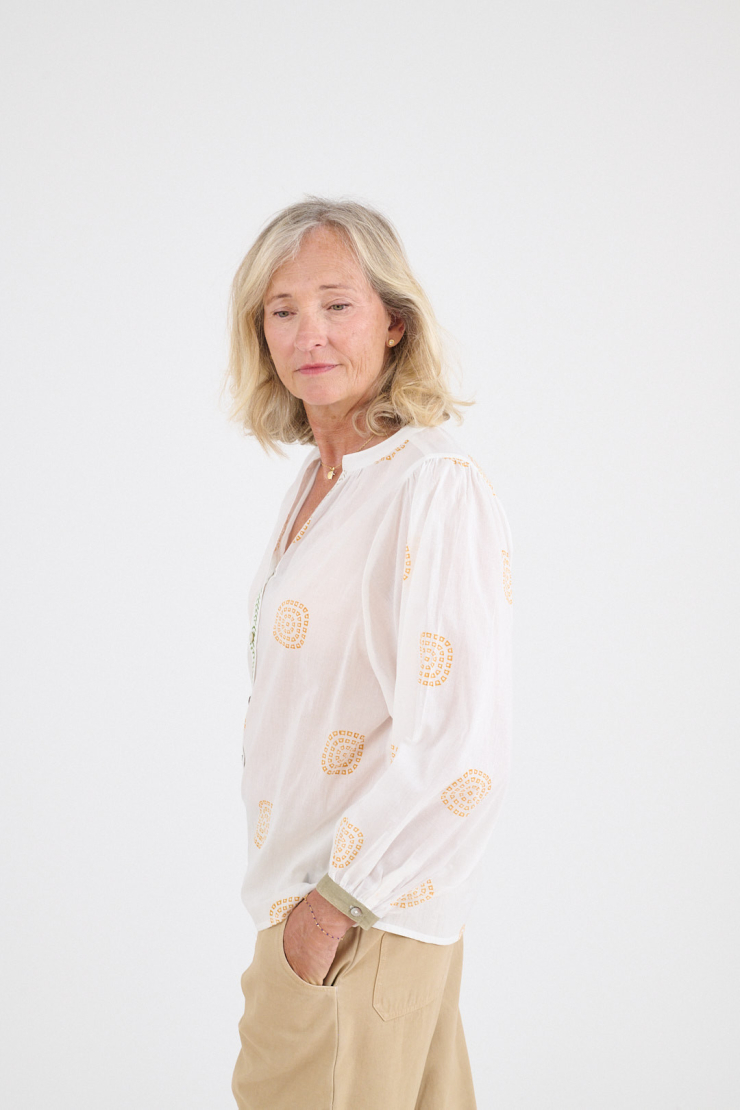 Combining natural comfort and casual elegance, this cotton blouse is an essential wardrobe piece.