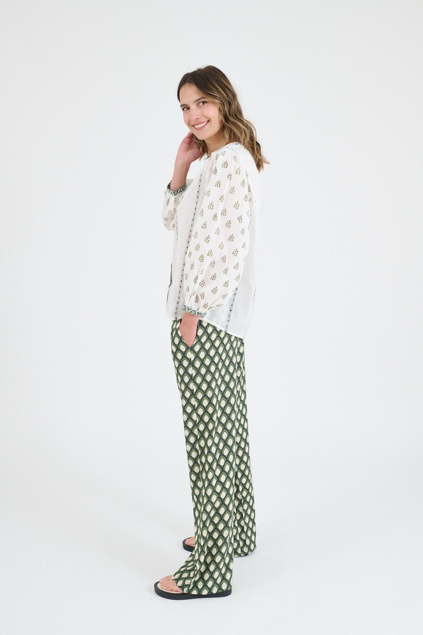 Combining natural comfort and casual elegance, this cotton blouse is an essential wardrobe piece.