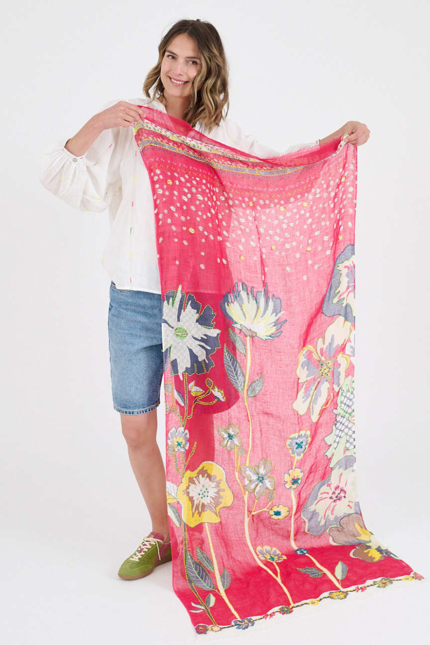 Carefully crafted, our linen scarf stands out with its handmade embroidery, adding a touch of elegance to your style.