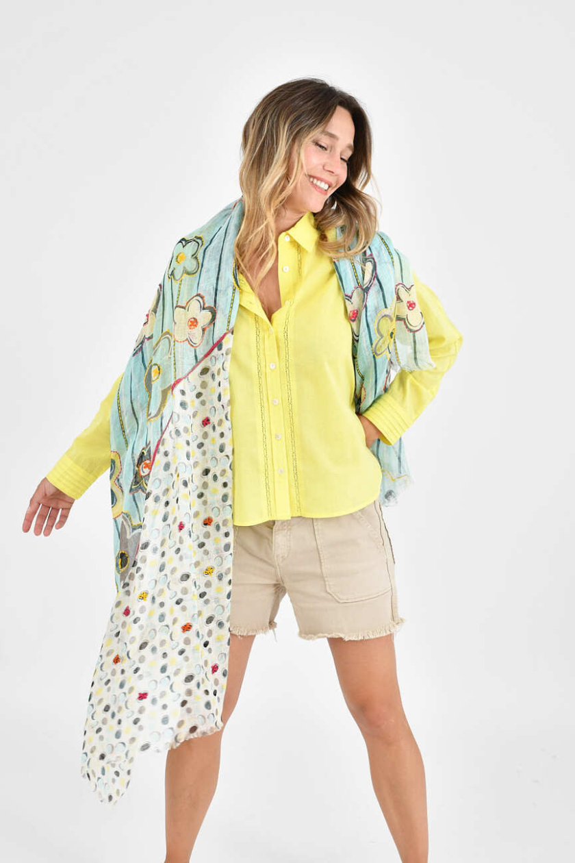 Carefully crafted, our linen scarf stands out with its handmade embroidery, adding a touch of elegance to your style.