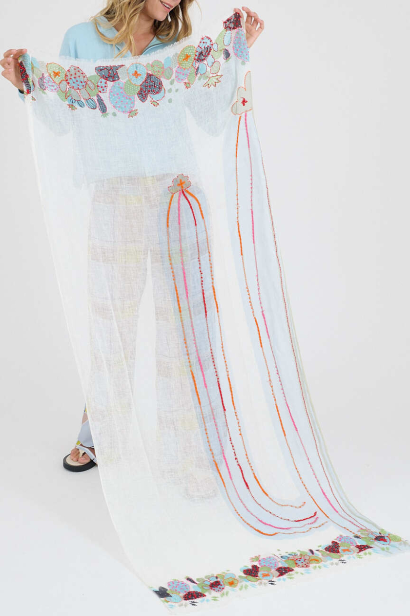 Carefully crafted, our linen scarf stands out with its handmade embroidery, adding a touch of elegance to your style.