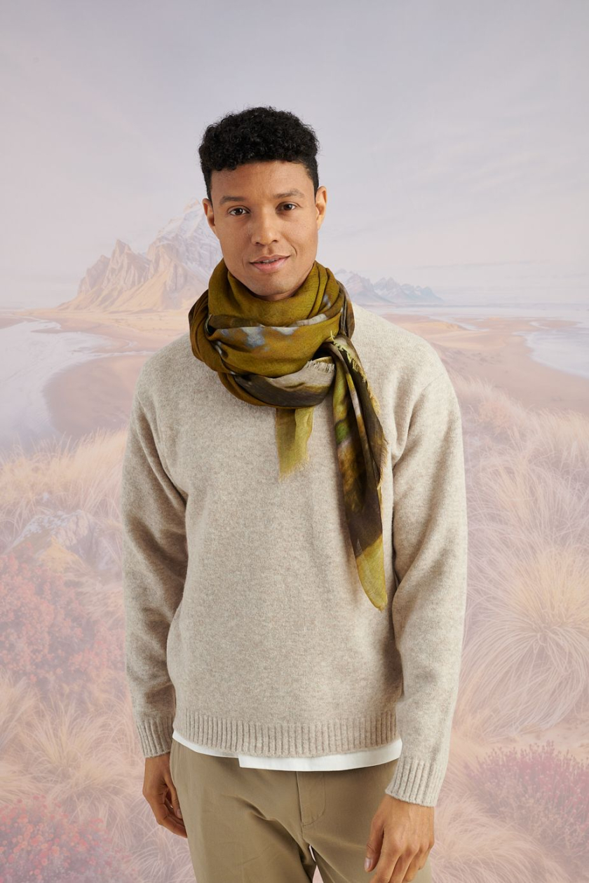 Enjoy modern comfort with our modal and wool scarf, measuring 100 x 200 cm. The soft modal combined with the warmth of wool creates an elegant and versatile accessory, ideal for adding a contemporary touch to your outfit. Dimensions: 100 x 200 cm Composition: 80% modal / 20% wool Care instructions: Dry clean
