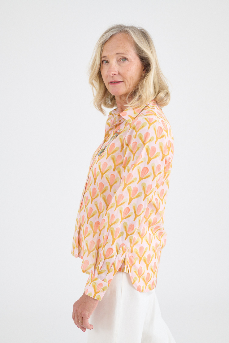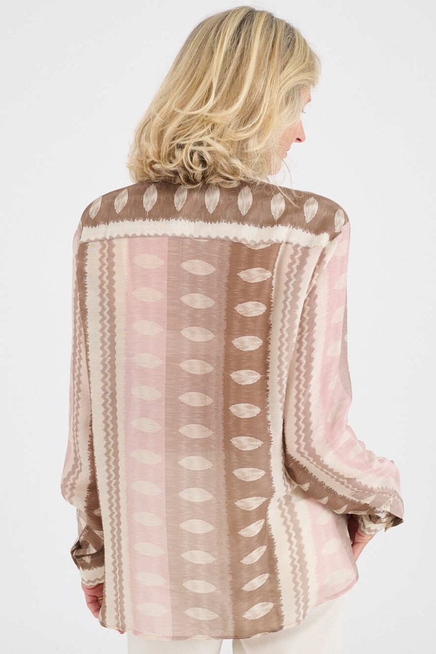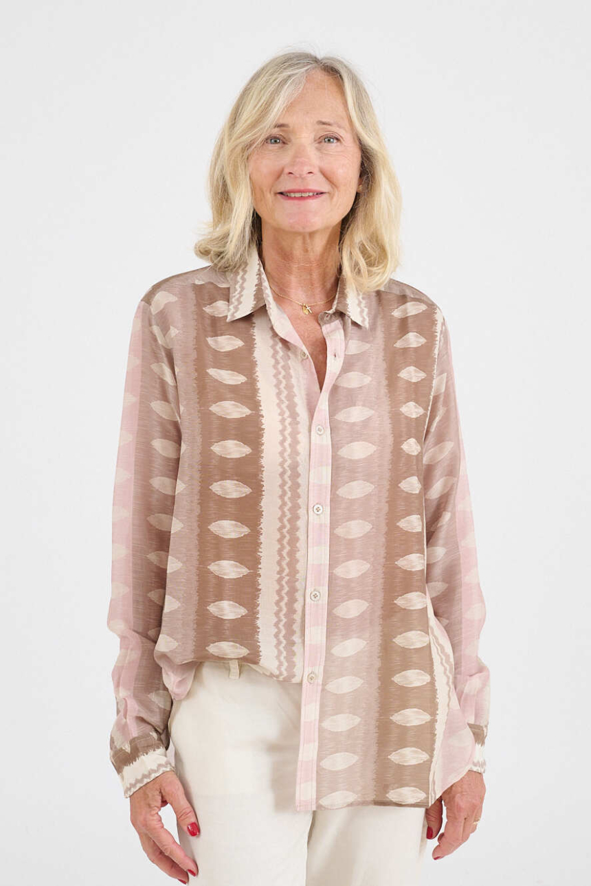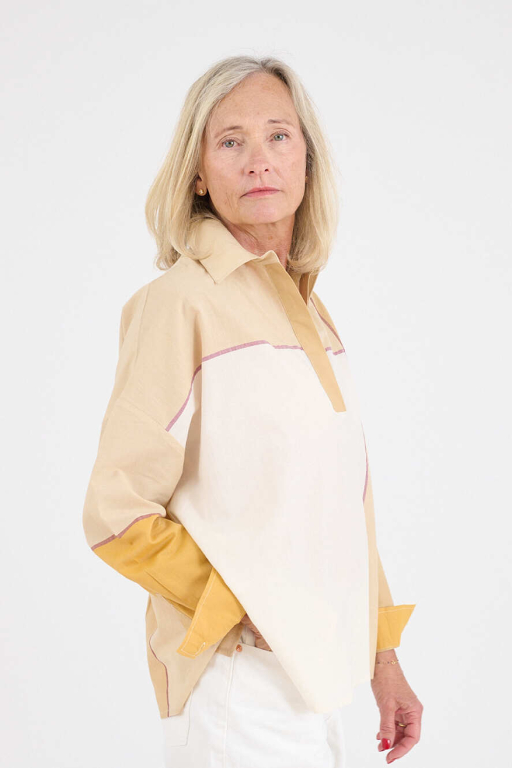A blend of soft and breathable materials for a light and flowing shirt. Modal brings comfort, viscose a beautiful drape: a perfect duo for a piece that is both comfortable, feminine, and easy to wear every day.
