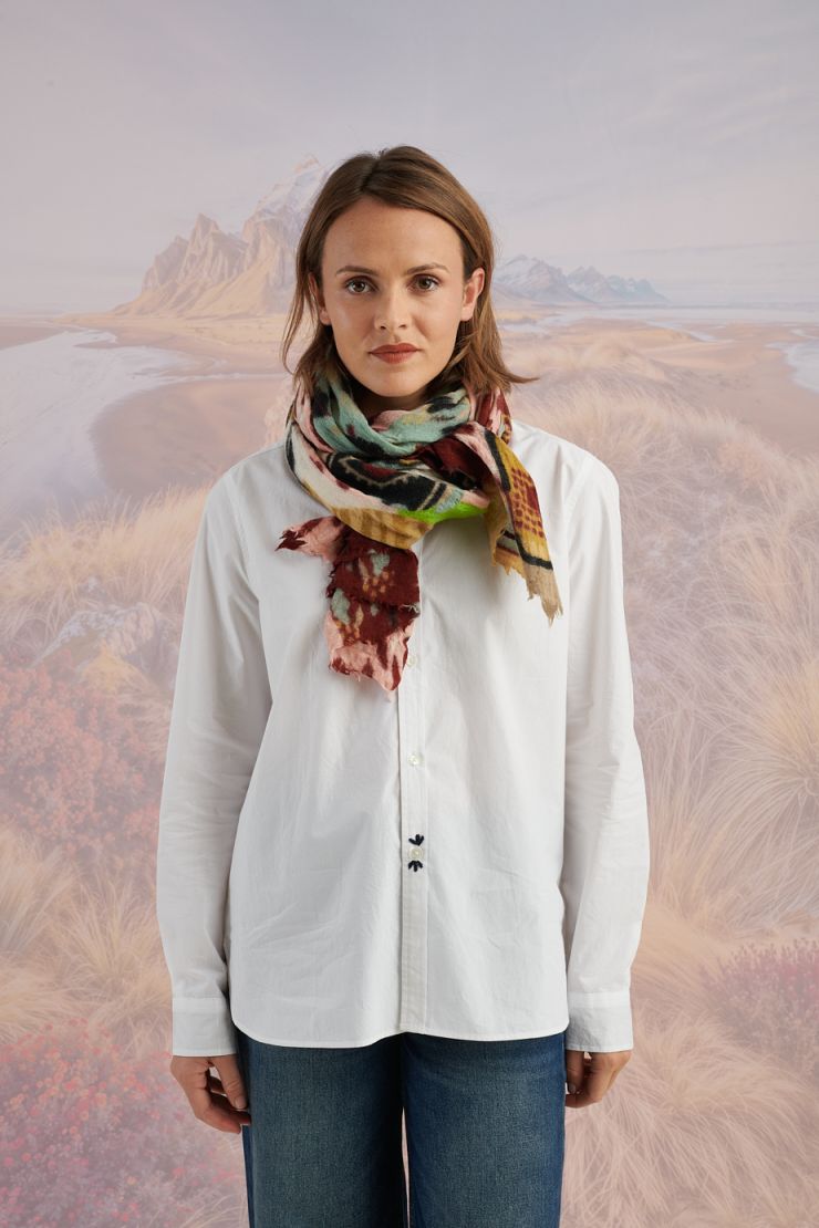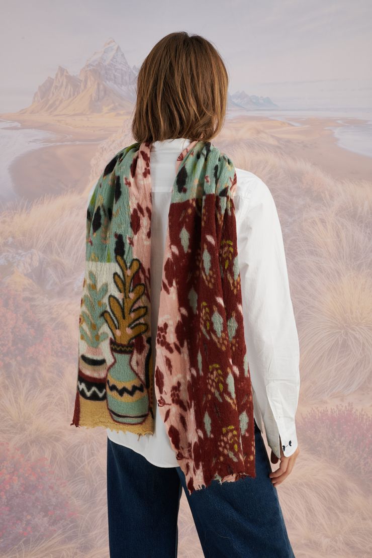 ¿El motivo favorito del equipo Panda? ¡Las flores, por supuesto! Perfecto para traer alegría a un look de invierno. Esta escarpa gruesa y caliente de lana es desclinada en verde pero también en otros colores. Clín de vista para el estilo vichy en la borda. Tamaño 80 x 190 cm.
