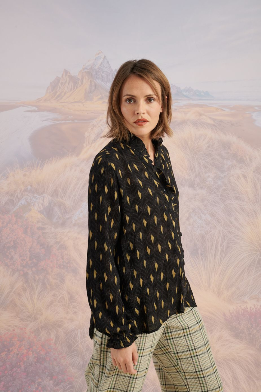 La camisa CHLOE ARTDECO ofrece un aspecto elegante y sofisticado. Disponible en cuatro tamaños. Composición: 100% rayón. Consejo de cuidado: Lavado delicado en máquina a 30°C.