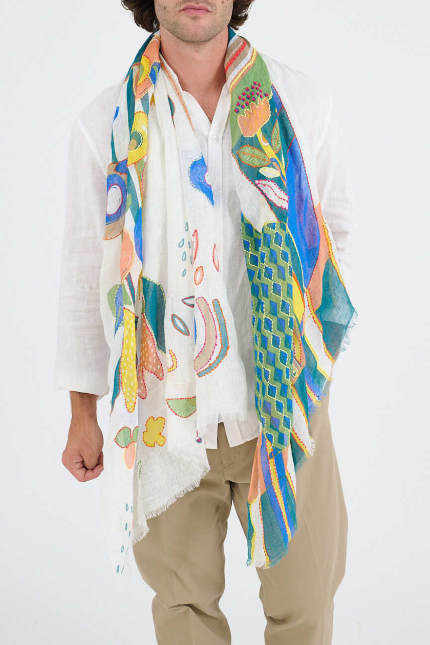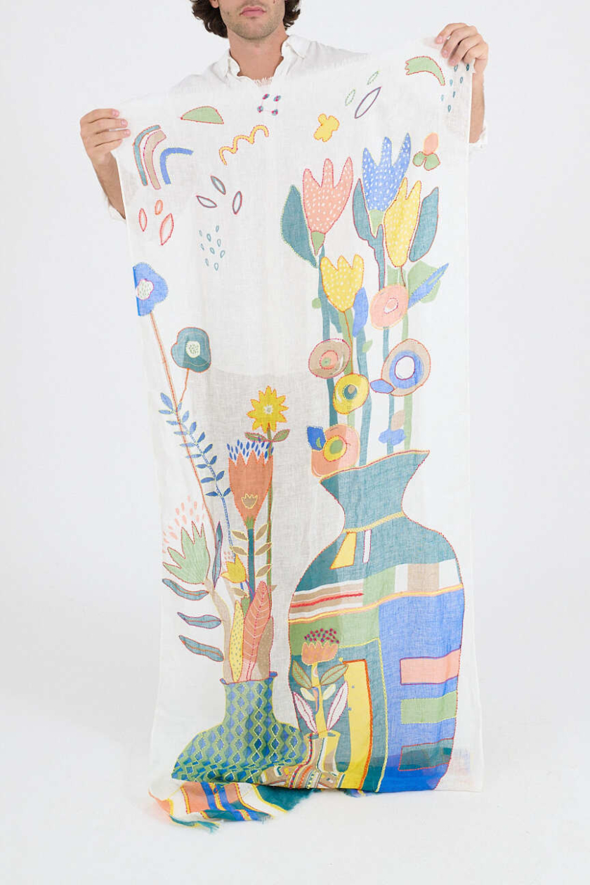 Confeccionada con esmero, nuestra bufanda de lino destaca por sus bordados hechos a mano, aportando un toque de elegancia a tu estilo.