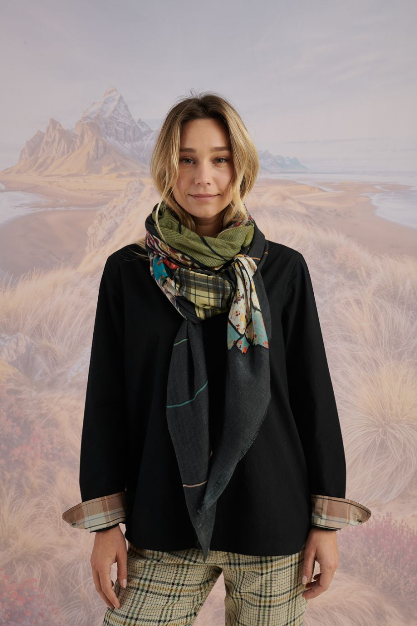 Eleve su estilo con nuestra bufanda unisex de lana y seda, con unas medidas de 100 x 200 cm. La suavidad de la lana y el brillo sutil de la seda crean un accesorio refinado y cálido, ideal para un toque de sofisticación discreta.Dimensiones: 100 x 200 cm Composición: 90% lana / 10% seda Consejo de cuidado: Limpieza en seco